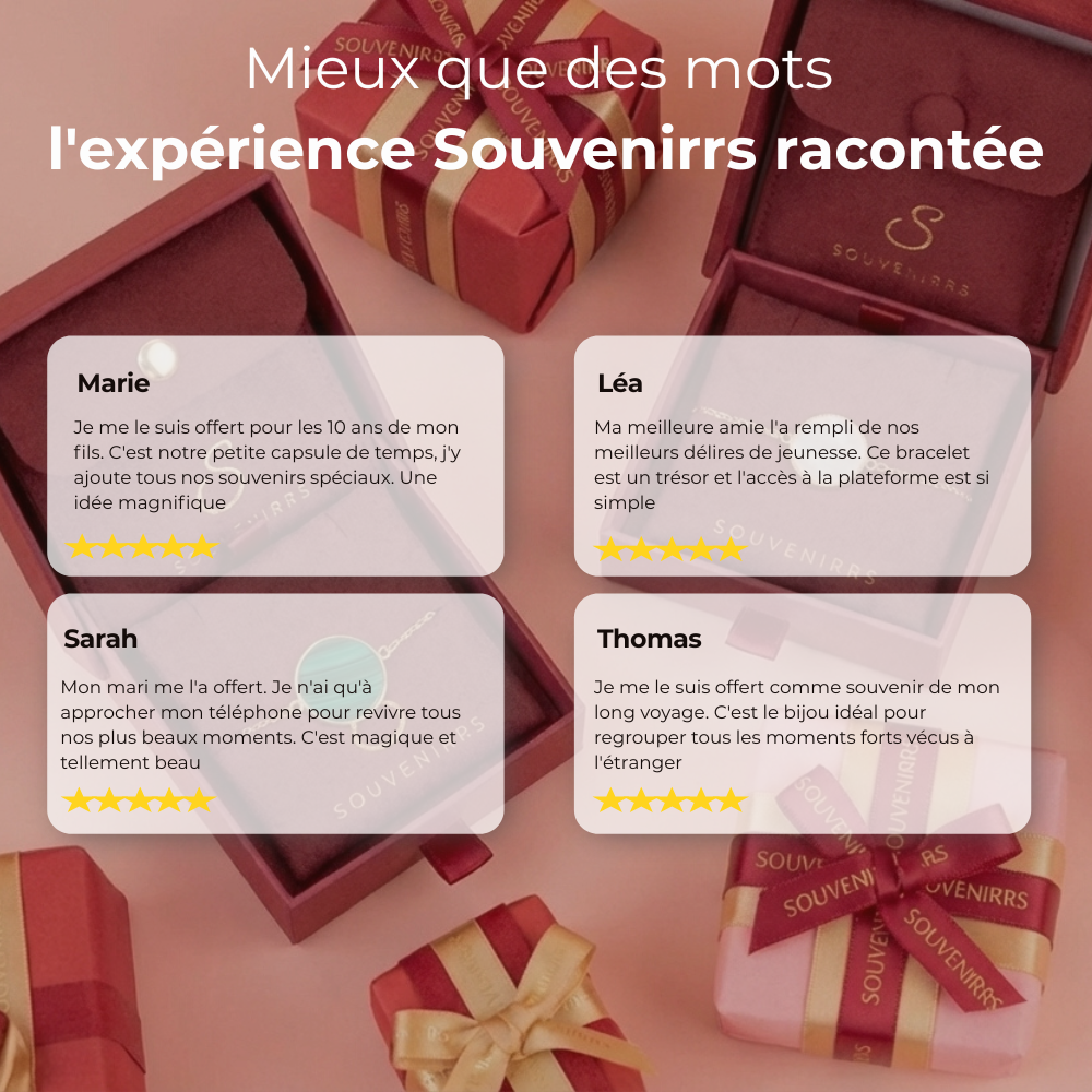Sur la Plateforme Souvenirrs, créez chaque semaine une nouvelle capsule de souvenirs inoubliables. Votre bijou se transforme ainsi en un véritable journal intime et précieux